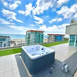 마마이아에 있는 해변 Summerland Beautiful Penthouse 아파트는 H2O Beach에서 도보로 5분 거리에 있습니다. 이 2개의 베드룸 아파트는 2개의 욕실과 부엌을 갖추고 있습니다.
